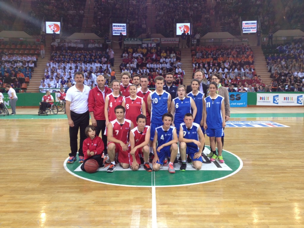 Moment très attendu pour les 2 équipes de basketball unifié de Special Olympics. Elles s’apprêtent à faire leur entrée sur le parquet du stade Beaublanc qui abrite le Club mythique du CSP Limoges. C’est l’ouverture du Championnat du Monde de Basket Scolaire. Près de 700 jeunes sportifs venus de 35 pays s’installent dans les tribunes pour assister à la cérémonie d’ouverture. Et les spectateurs commencent à arriver.